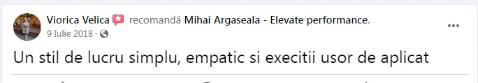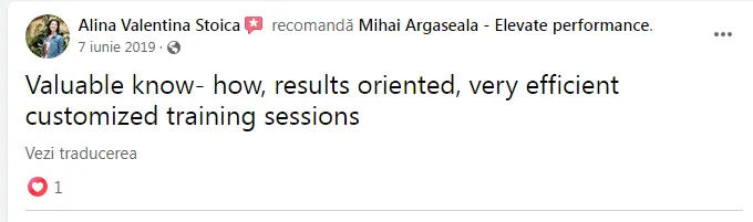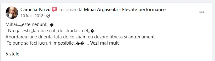 Iulia lucrează în corporaţie şi a venit în prag de burnout la mine, problema pe care am rezolvat-o uşor. Acum spune că niciodată nu se plictiseşte la antrenamentele alături pe care le facem impreuna.